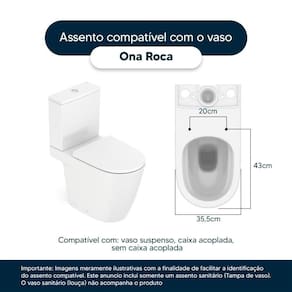 Instalação Simples e Rápida: Com todos os parafusos e componentes necessários inclusos, a instalação é rápida e descomplicada. Seu novo assento estará pronto para uso em questão de minutos. Desenvolvido especificamente para o modelo Ona da marca Roca, com ou sem caixa acoplada, proporciona um encaixe perfeito, oferecendo estabilidade e conforto durante o uso.
