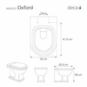 Este assento sanitário é compatível para uso em vaso sanitário Deca modelo Oxford com ou sem caixa acoplada.