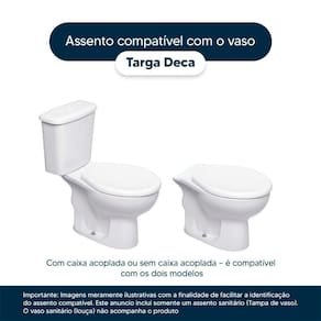 Detalhes e Cuidados Especiais: * Cor: Creme (Bege) * Compatibilidade: Modelo Targa da marca Deca * Conteúdo da Embalagem: Assento sanitário, parafusos de fixação e instruções de instalação.