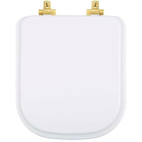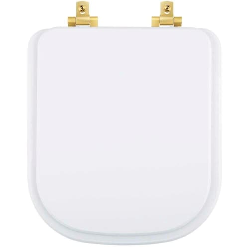 Assento Sanitário Mdf Soft Close Quadra Branco Para Vaso Deca Com Ferragem Dourada