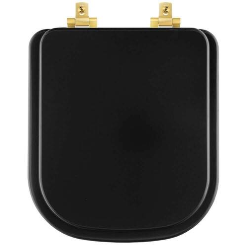 Assento Sanitário Mdf Soft Close Quadra Preto Fosco Para Vaso Deca Com Ferragem Dourada