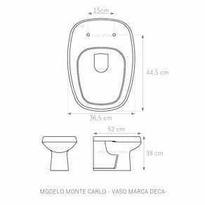 Assento Sanitário Almofadado (tampa de vaso) fabricado em polipropileno e polietileno especial. Resistente, durável, com excelente acabamento e design sofisticado. Assento macio, arco almofadado.Devido a sua composição este produto é totalmente impermeável e de fácil limpeza e higienização. Compatível com vasos sanitários de descarga convencional e também vasos com caixa acoplada. Acabamento brilhante no tampo e no assento. Fixação regulável para o perfeito encaixe na louça sanitária. Fácil limpeza, é higiênico e não acumula sujeira. O assento é acompanhado por parafusos para instalação e acabamentos. Embalagem dupla reforçada garante o recebimento do produto totalmente protegido. Especificações: - Dimensões da caixa: largura: 50,00cm. Altura: 4,00cm comprimento: 40,00cm - Acabamento: brilhante - Uso: este assento é adequado para uso na louça Deca modelo Monte Carlo - Garantia: 3 meses - Itens inclusos: Tampa e assento, parafusos e embalagem duplamente reforçada. Instalação: posicione o produto, devidamente centralizado, em cima do vaso sanitário. Encaixe os parafusos e encaixe as porcas. Aperte até que o assento esteja firme no vaso. Manutenção: recomendamos a limpeza periódica com pano levemente umedecido com sabão neutro. Não usar esponjas abrasivas ou palha de aço nem qualquer tipo de produto químico. Ean: 7891222044315