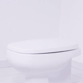 Assento com sistema de fechamento suave (soft close) para bacia Monte Carlo (Deca), em polipropileno, higiênico e de fácil limpeza, confortável, resistente, com tampa envolvente e superfície brilhante.