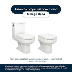 Este assento sanitário é compatível para uso em vaso sanitário Deca modelo Omega com ou sem caixa acoplada.