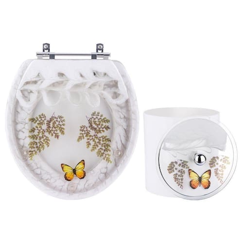 Kit Assento Sanitário Poliéster Convencional Branco Decorada com Borboleta Amarela + Lixeira Branca Decorada é a escolha perfeita para completar seu banheiro. Com acabamento diferenciado, este conjunto combina perfeitamente com o banheiro.