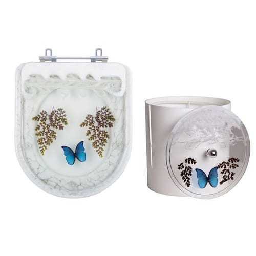 Kit Assento Sanitário Para Louças Duna Branco Decorado com Borboleta Azul e Avencas + Lixeira Branca decorada com Borboleta Azul e Avencas é a escolha perfeita para completar seu banheiro. Com acabamento diferenciado, este conjunto combina perfeitamente com o banheiro.