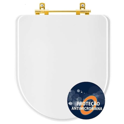 O Assento Sanitário Poliester Antibacteriano Carrara Branco para vaso Deca com Ferragem Dourada é a escolha definitiva para elevar o padrão de higiene e sofisticação do seu banheiro!