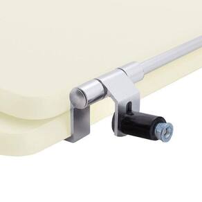 O encaixe do assento sanitário no vaso é feito por uma ferragem metálica que não oxida e não enferruja.