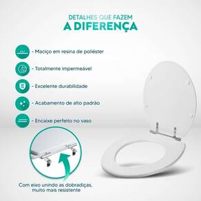 Limpeza: recomenda-se a limpeza do assento sanitário poliéster com água e sabão neutro, não utilizar produtos abrasivos.