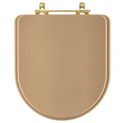 Assento Sanitario Poliester Carrara Bege Castor para vaso Deca com Ferragem Dourada