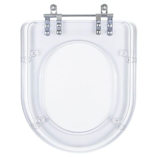 Assento Sanitario Poliester Carrara Transparente Para Vaso Deca Assento Sanitario Poliester Carrara Cristal para vaso Deca é a escolha perfeita para seu banheiro. O Assento Sanitário Poliéster é considerado o melhor tipo de assentos sanitários do mercado pelo seu acabamento impecável e excelente durabilidade. Este assento de vaso sanitário Carrara cor Transparente/Translúcido é produzido em resina maciça de poliéster. O poliéster é uma resina semelhante ao acrílico, só que mais robusta / resistente. Por isso, é totalmente impermeável, pode ser lavado com água à vontade. Fácil de limpar. Não acumula sujeira.