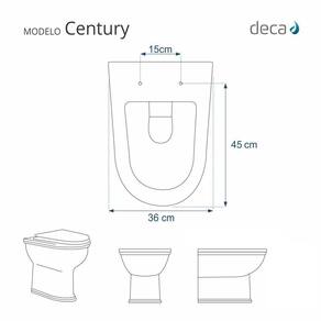 Compatível com o vaso sanitário Deca modelo Century com ou sem caixa acoplada.