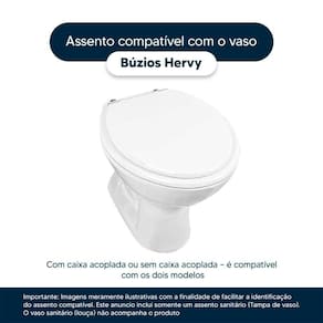 Detalhes e Cuidados Especiais: * Cor: Marfim (Bege) * Compatibilidade: Modelo Buzios da marca Hervy * Conteúdo da Embalagem: Assento sanitário, parafusos de fixação e instruções de instalação. * Fabricante do Assento Sanitário: Pontto Lavabo.