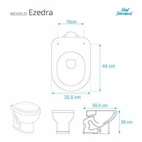 Assento para vaso sanitário em resina de poliéster, produto de excelente durabilidade com acabamento de alto brilho. É o assento sanitário de maior beleza com resistência e estética inigualáveis. A ferragem soft close tem um amortecedor para descida lenta da tampa e do assento o que confere característica de sofisticação e segurança ao produto. Devido a sua composição maciça em resina de poliéster este produto é totalmente impermeável e de fácil limpeza e higienização. Contêm aditivos contra os efeitos de raios ultravioletas, que evitam a distorção das cores com o passar do tempo. É indicado mesmo nas mais severas condições de uso, como hotéis, bares e restaurantes. Compatível com vasos sanitários de descarga convencional e também vasos com caixa acoplada. Tem 10 calços de PVC instalados na tampa e no assento para proporcionar estabilidade ao distribuir o peso uniformemente sobre a louça sanitária. Embalagem dupla reforçada garante a recepção do produto em sua residência totalmente intacto e protegido. Manutenção: recomendamos a limpeza periódica com água e sabão neutro. Não usar produtos abrasivos, esponjas e/ou palhas de aço, nem qualquer tipo de produto químico. Especificações: - Dimensões Da Caixa: Largura: 51,50cm, Altura: 4,00cm, Comprimento: 39,00cm - Peso Do Produto: 2,75kg - Código Do Produto: 700389 - Cor: Branco (Neve) - Acabamento: brilhante - Uso: este assento é indicado para uso na bacia Ideal Standard modelo Ezedra - Marca: Pontto Lavabo - Garantia: 12 meses - Itens inclusos: Tampa e assento com calços de PVC, ferragem inoxidável, embalagem duplamente reforçada. Contém todos os parafusos e encaixes para instalação, sendo necessária somente uma chave de fenda para instalar o produto na bacia sanitária. - Instalação: posicione o produto, devidamente centralizado, em cima do vaso sanitário. Sem desmontar a ferragem, insira as buchas de borracha dentro dos furos da bacia sanitária. Utilizando uma chave de fenda, aperte o parafuso no sentido horário até que o assento esteja firme no vaso.