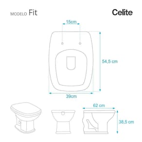 Assento Sanitario Poliester Soft Close Fit Azul Real para Vaso Celite. Assento para vaso sanitário em resina de poliéster, produto de excelente durabilidade com acabamento de alto brilho. É o assento sanitário de maior beleza com resistência e estética inigualáveis. A ferragem soft close tem um amortecedor para descida lenta da tampa e do assento o que confere característica de sofisticação e segurança ao produto. Devido a sua composição maciça em resina de poliéster este produto é totalmente impermeável e de fácil limpeza e higienização. Contêm aditivos contra os efeitos de raios ultravioletas, que evitam a distorção das cores com o passar do tempo. É indicado mesmo nas mais severas condições de uso, como hotéis, bares e restaurantes. Compatível com vasos sanitários de descarga convencional e também vasos com caixa acoplada. Tem 10 calços de PVC instalados na tampa e no assento para proporcionar estabilidade ao distribuir o peso uniformemente sobre a louça sanitária. Embalagem dupla reforçada garante a recepção do produto em sua residência totalmente intacto e protegido. Manutenção: recomendamos a limpeza periódica com água e sabão neutro. Não usar produtos abrasivos, esponjas e/ou palhas de aço, nem qualquer tipo de produto químico. Especificações: - Dimensões Da Caixa: Largura: 51,50cm, Altura: 4,00cm, Comprimento: 39,00cm - Peso Do Produto: 2,75kg - Código Do Produto: 700211 - Cor: Azul Real - Acabamento: brilhante - Uso: este assento é adequado para uso na bacia Celite modelo Fit - Marca: Pontto Lavabo - Garantia: 12 meses - Itens inclusos: Tampa e assento com calços de PVC, ferragem inoxidável, embalagem duplamente reforçada. Contém todos os parafusos e encaixes para instalação, sendo necessária somente uma chave de fenda para instalar o produto na bacia sanitária. - Instalação: posicione o produto, devidamente centralizado, em cima do vaso sanitário. Sem desmontar a ferragem, insira as buchas de borracha dentro dos furos da bacia sanitária. Utilizando uma chave de fenda, aperte o parafuso no sentido horário até que o assento esteja firme no vaso. Ean: 7897116786453