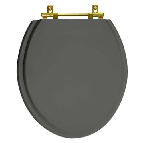 Assento Sanitario Poliéster Convencional Universal Oval Cinza Escuro Com Ferragem Dourada