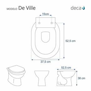 Compatível com o vaso sanitário Deca modelo De Ville com ou sem caixa acoplada.