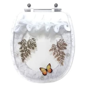 Assento Sanitario Poliester Decorado Borboleta Aspen para vaso Deca - Branco