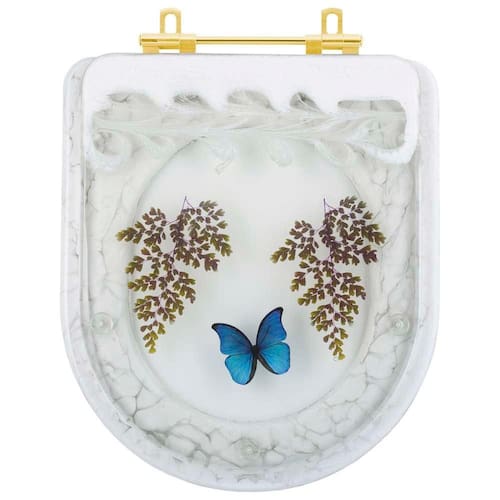 O Assento Sanitario Poliester Decorado Borboleta Azul Carrara para vaso Deca com Ferragem Dourada é a opção ideal para quem busca combinar funcionalidade com elegância em seu banheiro.