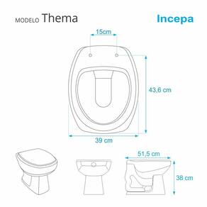 Compatível para uso em vaso sanitário Incepa modelo Thema com ou sem caixa acoplada.