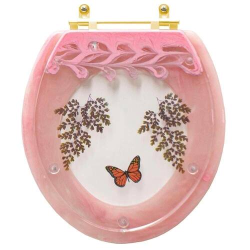 Assento Sanitário Poliester Decorado Oval Convencional Rosa Quartzo Avenca Com Borboleta Vermelha Com Ferragem Dourada O Assento Sanitário Poliester Decorado Oval Convencional Rosa Quartzo Avenca com Borboleta Vermelha Com Ferragem Dourada é a opção ideal para quem busca combinar funcionalidade com elegância em seu banheiro. Elegância e Diferenciação: Um design refinado e diferenciais de alto padrão. Com acabamento de excelência e ferragens em alumínio anodizado na cor Dourada que não oxidam nem enferrujam, ele é a combinação perfeita de beleza e durabilidade.