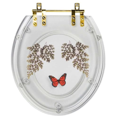 Assento Sanitário Poliester Decorado Oval Transparente Avenca Com Borboleta Vermelha Com Ferragem Dourada O Assento Sanitário Poliester Decorado Oval Transparente Avenca com Borboleta Vermelha Com Ferragem Dourada é a opção ideal para quem busca combinar funcionalidade com elegância em seu banheiro. Elegância e Diferenciação: Um design refinado e diferenciais de alto padrão. Com acabamento de excelência e ferragens em alumínio anodizado na cor Dourada que não oxidam nem enferrujam, ele é a combinação perfeita de beleza e durabilidade.