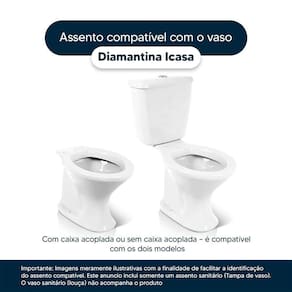 Compatível com o vaso sanitário Icasa modelo Diamantina com ou sem caixa acoplada.