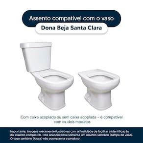 Instalação Simples e Rápida: Com todos os parafusos e componentes necessários inclusos, a instalação é rápida e descomplicada. Seu novo assento estará pronto para uso em questão de minutos. Desenvolvido especificamente para o modelo Dona Beja da marca Santa Clara, com ou sem caixa acoplada, proporciona um encaixe perfeito, oferecendo estabilidade e conforto durante o uso.