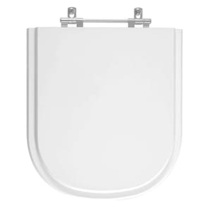 O encaixe do assento sanitário no vaso é feito por uma ferragem metálica que não oxida e não enferruja.