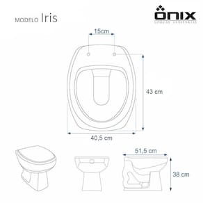 Tampa de Vaso Sanitário Poliéster Iris Branco para bacia Onix é a escolha perfeita para seu banheiro trazendo beleza e elegência. Esta Tampa de Vaso é fabricada 100% em Resina Virgem de Poliéster. É impermeável, ultra resistente, tem acabamento brilhante e ferragem metálica que não enferruja. Com materiais de primeira linha, destaca-se por sua qualidade impecável. Este Assento Sanitário ser usado em vaso sanitário com ou sem caixa acoplada. Instalação rápida e fácil, acompanha os parafusos de fixação e basta apenas uma chave de fenda para instalar no vaso. Entrega garantida e rastreada com embalagem dupla reforçada. Cor: Branco. Distância entre os parafusos: 15cm. Acabamento: brilhante. Dicas: Itens inclusos: 01 assento sanitário em resina maciça de poliéster Limpeza: fácil limpeza e manutenção. Recomenda-se a limpeza com água e sabão neutro e não utilizar produtos abrasivos ou químicos. Instalação: Sem desmontar o produto, posicione sobre os furos do vaso sanitário e encaixe os dois parafusos com as borrachas pretas dentro dos furos do mesmo. Aperte com a chave de fenda no sentido horário até ficar firme. Importante: este anúncio inclui somente o produto conforme descrição acima. Todos os elementos decorativos das fotos não estão inclusos. Observação: O código 6LPF / 1.6gpf gravado na louça sanitária corresponde ao fluxo de água de uma descarga e não indica o modelo da mesma.