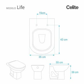 Compatível para uso em vaso sanitário Celite modelo Life com ou sem caixa acoplada.