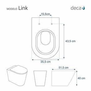 com o vaso sanitário Deca modelo Link/LK com ou sem caixa acoplada.