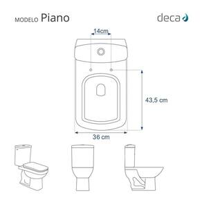 Compatível com o vaso sanitário Deca modelo Piano com ou sem caixa acoplada.