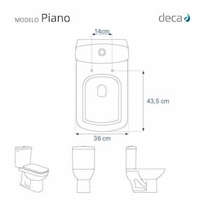 Compatível com o vaso sanitário Deca modelo Piano com ou sem caixa acoplada.