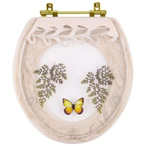 O Assento Sanitário Poliester Oval Bege Claro Decorado Borboleta Amarela Com Ferragem Dourada é a opção ideal para quem busca combinar funcionalidade com elegância em seu banheiro.