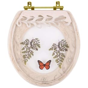 O Assento Sanitário Poliester Oval Bege Claro Decorado Borboleta Vermelha Com Ferragem Dourada é a opção ideal para quem busca combinar funcionalidade com elegância em seu banheiro.