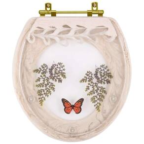 O Assento Sanitário Poliester Oval Creme Decorado Borboleta Vermelha Com Ferragem Dourada é a opção ideal para quem busca combinar funcionalidade com elegância em seu banheiro.