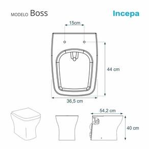 Assento sanitário para Louça Boss (Incepa) fabricado com 100% de resina de poliéster virgem, sem adição de talco industrial, fibra ou manta de madeira. Devido a sua composição maciça em resina de poliéster este produto é totalmente impermeável, resistente a água, fácil higienização e alta durabilidade. Superfície fosca e padrão de acabamento Premium com cantos arredondados proporcionando um visual moderno, resistente às condições mais severas encontradas em um ambiente sanitário. Montado com rebites ocultos e ferragem em Latão com o sofisticado sistema Slow close que, ao mínimo toque, permite o fechamento suave da tampa e do assento evitando ruído e impacto na louça, e com 8 batedores em PVC que proporciona maior durabilidade e conforto. Acabamento: Alto Brilho Acompanha Manual de Instalação: Sim Altura: 4 cm Ambiente Principal: Banheiro Comprimento: 53,5 cm Cor: Cinza Fosco Cor do Produto: Cinza fosco Distância dos Furos: 15 cm Espessura: 10,4 mm Fechamento: Suave (Soft Close) Ferragens: Latão Indicado para bacia: Boss Informações Complementares: Não subir ou sentar na tampa do assento Instruções de instalação: Verificar manual de instalação Itens Inclusos: Componentes de fixação Largura: 39,5 cm Linha ou Coleção: Slow Close Linha recomendada para uso: Boss Manual de Montagem e Instalação: https://product-hub-prd.madeiramadeira.com.br/899555/documents/69237182-d2a3-4d37-a2cc-b86cc62310b2stalacaolimpezaassentoliso.pdf Marca recomendada para uso: Incepa Material Principal: Poliéster Origem do Produto: Nacional Peso: 4 kg Possui rebaixamento frontal: Não Proteção antibacteriana: Não Quantidade De Calços: 8 Recomendações de Uso, Manutenção e Limpeza: Usar somente água e sabão neutro com um pano macio, não use produtos abrasivos, álcool, espoja de aço, detergentes fortes ou produtos químicos agressivos e para finalização o assento deverá ser lustrado com um pano macio e produto à base de silicone. Resistência a Risco: Sim Superfície lisa: Não Suporta Até (kg): 280 kg Tipo de Assento: Específico Tipo de Fixação: Parafusado Marca: Sedile Assentos