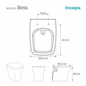 Assento sanitário para Louça Boss (Incepa) fabricado com 100% de resina de poliéster virgem, sem adição de talco industrial, fibra ou manta de madeira. Devido a sua composição maciça em resina de poliéster este produto é totalmente impermeável, resistente a água, fácil higienização e alta durabilidade. Superfície fosca e padrão de acabamento Premium com cantos arredondados proporcionando um visual moderno, resistente às condições mais severas encontradas em um ambiente sanitário. Montado com rebites ocultos e ferragem em Latão com o sofisticado sistema Slow close que, ao mínimo toque, permite o fechamento suave da tampa e do assento evitando ruído e impacto na louça, e com 8 batedores em PVC que proporciona maior durabilidade e conforto. Acabamento: Alto Brilho Acompanha Manual de Instalação: Sim Altura: 4 cm Ambiente Principal: Banheiro Comprimento: 53,5 cm Cor: Preto Fosco Cor do Produto: Preto Fosco Distância dos Furos: 15 cm Espessura: 10,4 mm Fechamento: Suave (Soft Close) Ferragens: Latão Indicado para bacia: Boss Informações Complementares: Não subir ou sentar na tampa do assento Instruções de instalação: Verificar manual de instalação Itens Inclusos: Componentes de fixação Largura: 39,5 cm Linha ou Coleção: Slow Close Linha recomendada para uso: Boss Manual de Montagem e Instalação: https://product-hub-prd.madeiramadeira.com.br/899554/documents/5ef36833-dd0a-4806-9bce-8c3bd9d81457stalacaolimpezaassentoliso.pdf Marca recomendada para uso: Incepa Material Principal: Poliéster Origem do Produto: Nacional Peso: 4 kg Possui rebaixamento frontal: Não Proteção antibacteriana: Não Quantidade De Calços: 8 Recomendações de Uso, Manutenção e Limpeza: Usar somente água e sabão neutro com um pano macio, não use produtos abrasivos, álcool, espoja de aço, detergentes fortes ou produtos químicos agressivos e para finalização o assento deverá ser lustrado com um pano macio e produto à base de silicone. Resistência a Risco: Sim Superfície lisa: Não Suporta Até (kg): 280 kg Tipo de Assento: Específico Tipo de Fixação: Parafusado Marca: Sedile Assentos