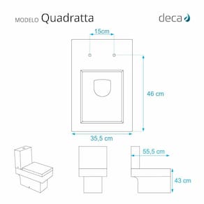 Compatível com o vaso sanitário Deca modelo Quadratta com ou sem caixa acoplada (é compatível com os dois tipos de vasos).