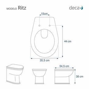 Assento Sanitário Poliester Ritz Branco Ferragem Dourada para Vaso Deca é a escolha perfeita para seu banheiro. Produzido em resina maciça de poliester, é totalmente impermeável, muito resistente. Apresenta excelente durabilidade. Com acabamento de alto padrão, é considerado o melhor material para assentos do mercado. Proporciona mais higiene e conforto. Fica firme no vaso sanitário. Possui ferragem de alumínio anodizado não oxida e não enferruja. Muito resistente. Instalação rápida e fácil, basta uma chave de fenda e fica pronta em menos de um minuto. Compatível para uso em vaso sanitário Deca modelo Ritz com ou sem caixa acoplada. Possui ferragem dourada para perfeita combinação com o ambiente. Ean: 7899983615690