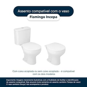 Compatível com o vaso sanitário Icasa modelo Sabará com ou sem caixa acoplada.