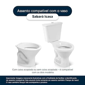 Compatível com o vaso sanitário Icasa modelo Sabará com ou sem caixa acoplada.