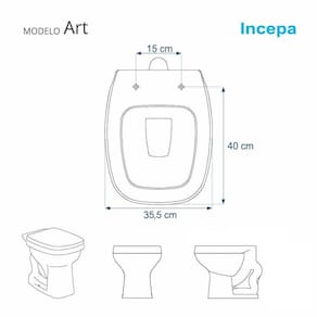 Compatível para uso em vaso sanitário Incepa modelo Art com ou sem caixa acoplada.