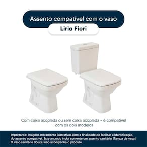 Instalação Simples e Rápida: Com todos os parafusos e componentes necessários inclusos, a instalação é rápida e descomplicada. Seu novo assento estará pronto para uso em questão de minutos. Desenvolvido especificamente para o modelo Lirio da marca Fiori, com ou sem caixa acoplada, proporciona um encaixe perfeito, oferecendo estabilidade e conforto durante o uso.