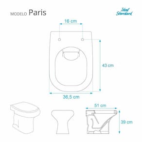 Compatível para uso em vaso sanitário Ideal Standard modelo Paris com ou sem caixa acoplada.