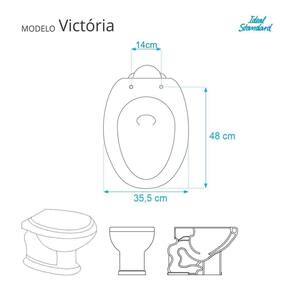 Detalhes e Cuidados Especiais: * Cor: Ebano (Preto) * Compatibilidade: Modelo Victoria da marca Ideal Standard * Conteúdo da Embalagem: Assento sanitário, parafusos de fixação e instruções de instalação. * Fabricante do Assento Sanitário: Pontto Lavabo.