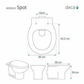 Assento Sanitário Poliéster Spot Branco para vaso Deca. Qualidade e elegância para o seu banheiro. Este Assento Sanitário termofixo é fabricado em Resina de Poliéster o que lhe garante total impermeabilidade. Acabamento brilhante e ferragem metálica que não oxida. Com materiais de primeira linha, destaca-se por sua qualidade incomparável. É compatível para uso em vaso sanitário com ou sem caixa acoplada. É muito rápido e fácil instalar, acompanha parafusos de fixação e com apenas uma chave de fenda é possível instalar no vaso sanitário. Entrega garantida e rastreada com embalagem dupla reforçada. Cor: Branco. Distância entre os parafusos: 15cm. Acabamento: brilhante. Dicas: Itens inclusos: 01 assento sanitário em resina maciça de poliéster Limpeza: fácil limpeza e manutenção. Recomenda-se a limpeza com água e sabão neutro e não utilizar produtos abrasivos ou químicos. Instalação: Sem desmontar o produto, posicione sobre o vaso sanitário e encaixe os dois parafusos com as borrachas pretas dentro dos furos do vaso. Aperte com a chave de fenda no sentido horário até ficar firme. Importante: este anúncio inclui somente o produto conforme descrição acima. Todos os elementos decorativos das fotos não estão inclusos. Observação: O código 6LPF / 1.6gpf gravado na louça sanitária corresponde ao fluxo de água de uma descarga e não indica o modelo da mesma.