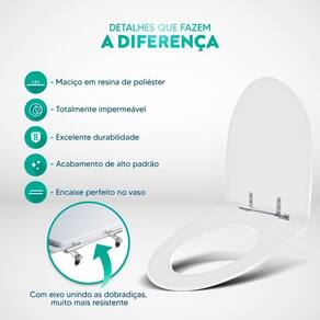 Limpeza: recomenda-se a limpeza do assento sanitário poliéster com água e sabão neutro, não utilizar produtos abrasivos.
