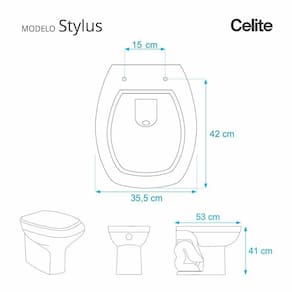 Assento Sanitario Poliester Stylus Amarelo Terra para Vaso Celite. Assento para vaso sanitário em resina de poliéster, produto de excelente durabilidade com acabamento de alto brilho. É o assento sanitário de maior beleza com resistência e estética inigualáveis. Devido a sua composição maciça em resina de poliéster este produto é totalmente impermeável e de fácil limpeza e higienização. Contêm aditivos contra os efeitos de raios ultravioletas, que evitam a distorção das cores com o passar do tempo. É indicado mesmo nas mais severas condições de uso, como hotéis, bares e restaurantes. Compatível com vasos sanitários de descarga convencional e também vasos com caixa acoplada. Tem 10 calços de PVC instalados na tampa e no assento para proporcionar estabilidade ao distribuir o peso uniformemente sobre a louça sanitária. Embalagem dupla reforçada garante a recepção do produto em sua residência totalmente intacto e protegido. Manutenção: recomendamos a limpeza periódica com água e sabão neutro. Não usar produtos abrasivos, esponjas e/ou palhas de aço, nem qualquer tipo de produto químico. Especificações: - Dimensões da caixa: largura: 51,50cm, altura: 4,00cm, comprimento: 39,00cm - Peso do produto: 2,75kg - Código do produto: 901669 - Cor: Amarelo Terra - Acabamento: brilhante - Uso: este assento é adequado para uso na bacia Celite modelo Stylus - Marca: Pontto Lavabo - Garantia: 12 meses - Itens inclusos: Tampa e assento com calços de PVC, ferragem inoxidável, embalagem duplamente reforçada. Contém todos os parafusos e encaixes para instalação, sendo necessária somente uma chave de fenda para instalar o produto na bacia sanitária. - Instalação: posicione o produto, devidamente centralizado, em cima do vaso sanitário. Sem desmontar a ferragem, insira as buchas de borracha dentro dos furos da bacia sanitária. Utilizando uma chave de fenda, aperte o parafuso no sentido horário até que o assento esteja firme no vaso.